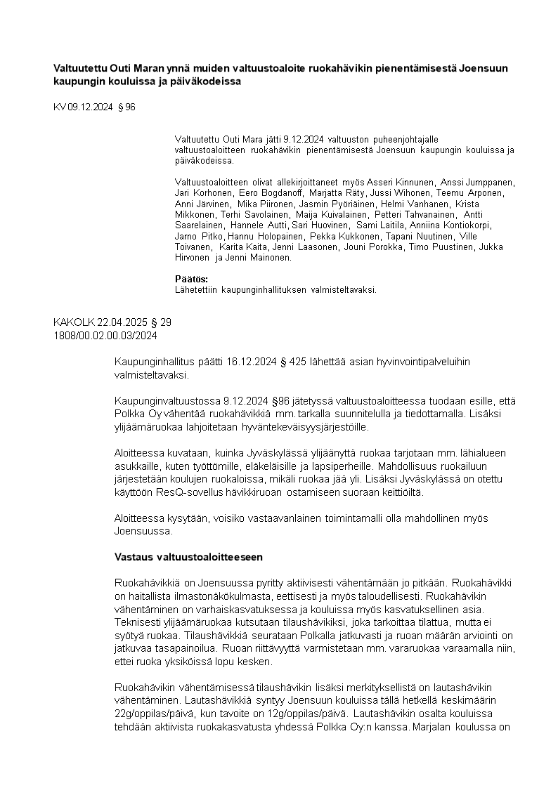 Pöytäkirja 22.04.2025/Pykälä 29