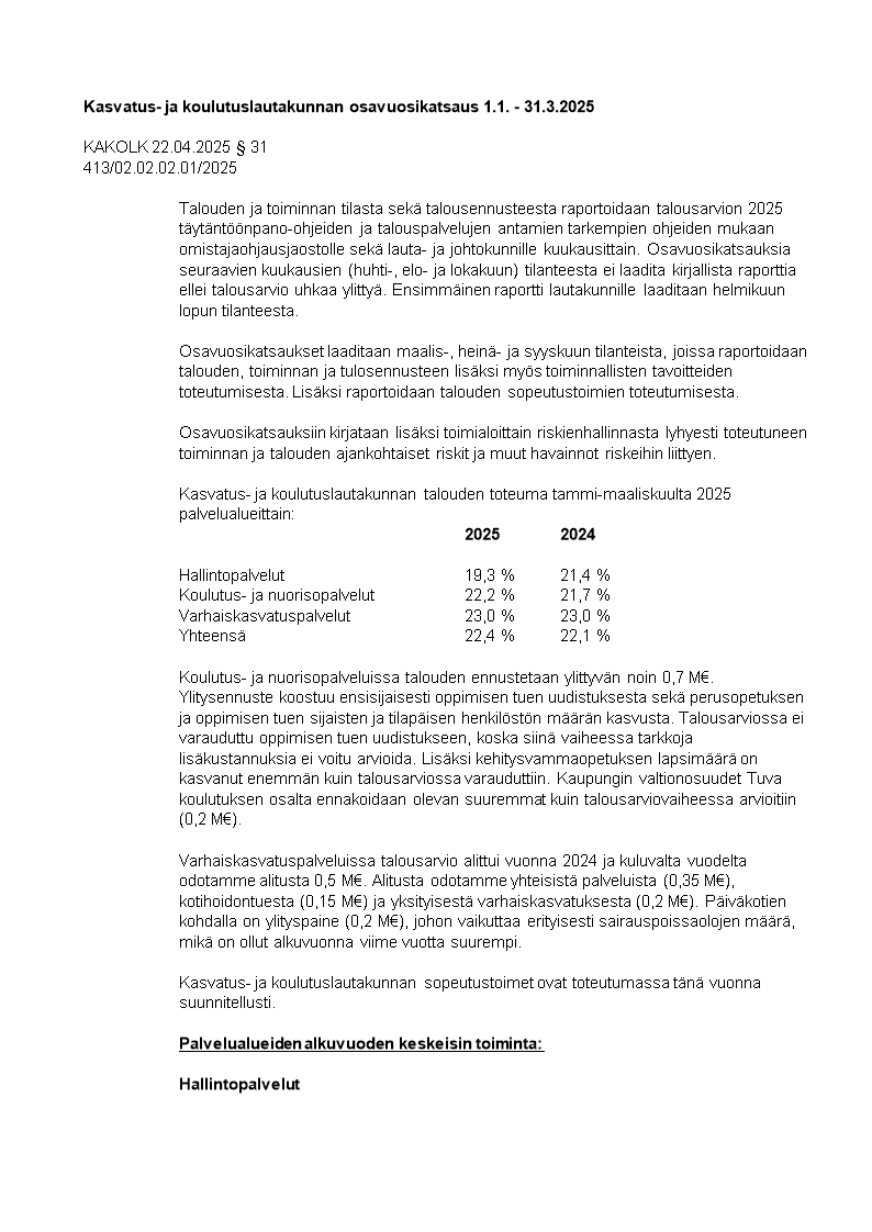 Pöytäkirja 22.04.2025/Pykälä 31