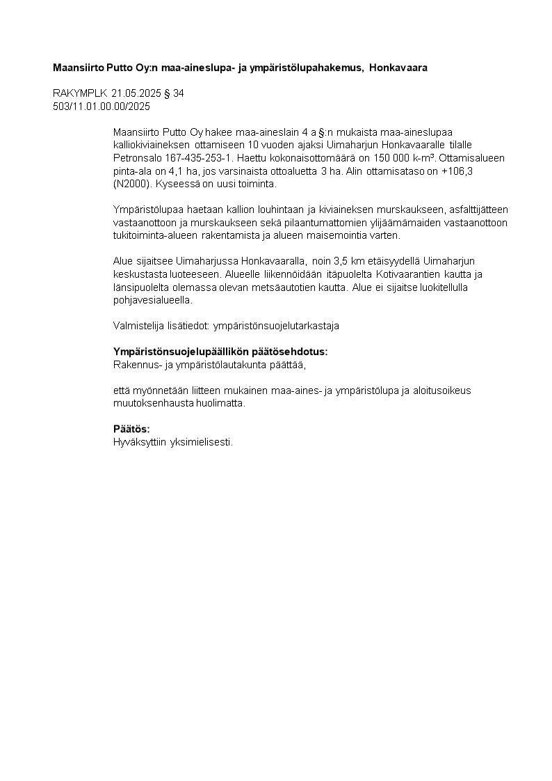 Pöytäkirja 21.05.2025/Pykälä 34