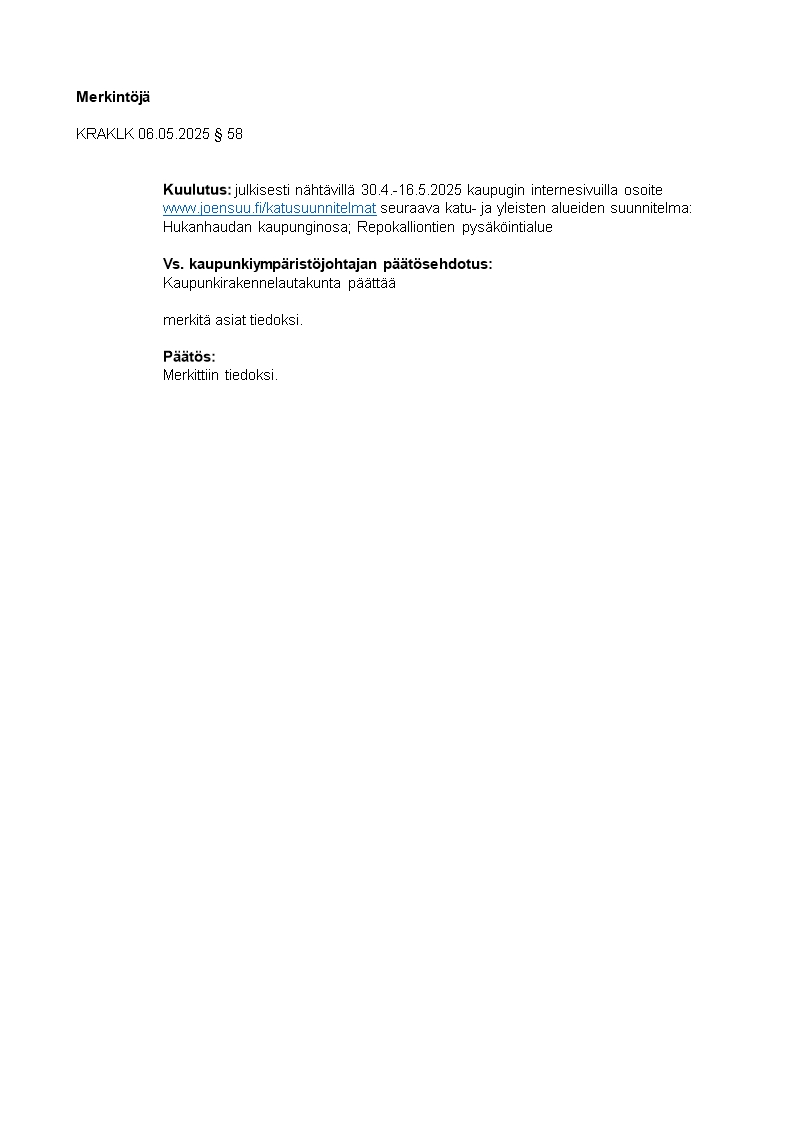 Pöytäkirja 06.05.2025/Pykälä 58
