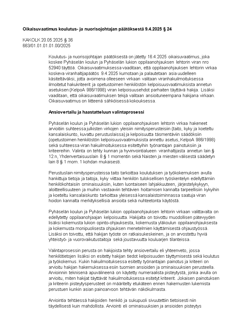 Pöytäkirja 20.05.2025/Pykälä 36
