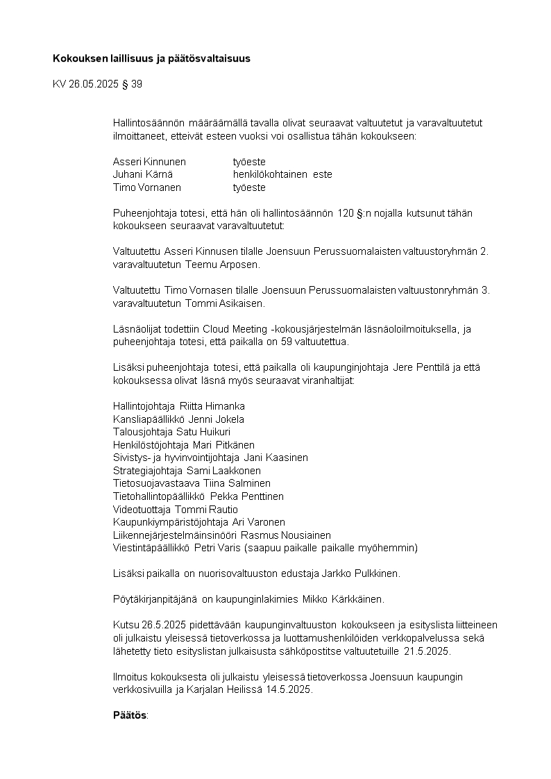 Pöytäkirja 26.05.2025/Pykälä 39