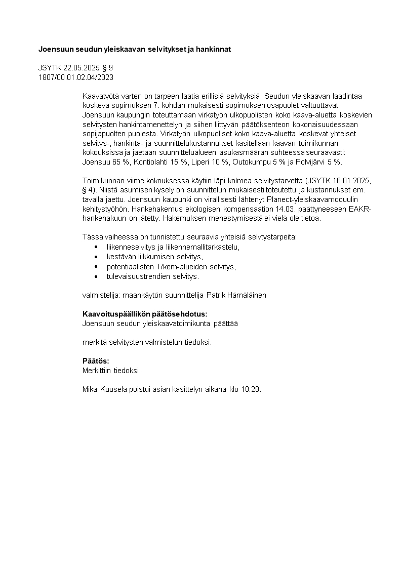 Pöytäkirja 22.05.2025/Pykälä 9