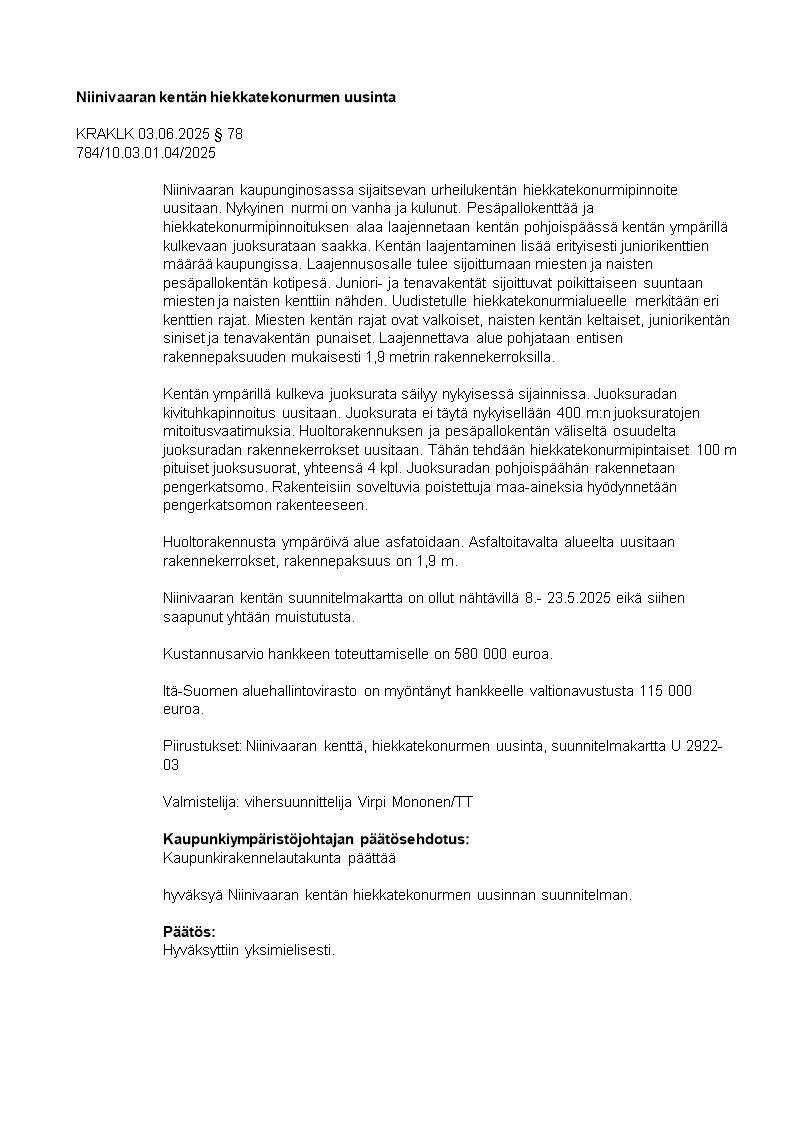 Pöytäkirja 03.06.2025/Pykälä 78