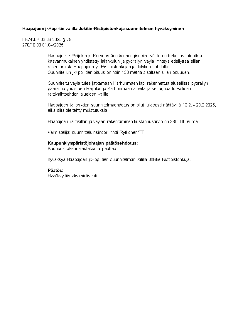 Pöytäkirja 03.06.2025/Pykälä 79