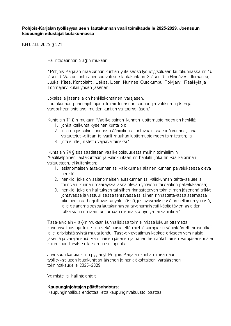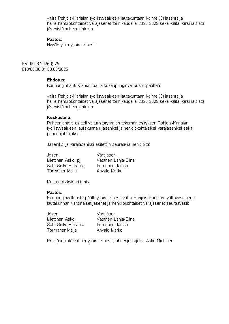 Pöytäkirja 09.06.2025/Pykälä 75