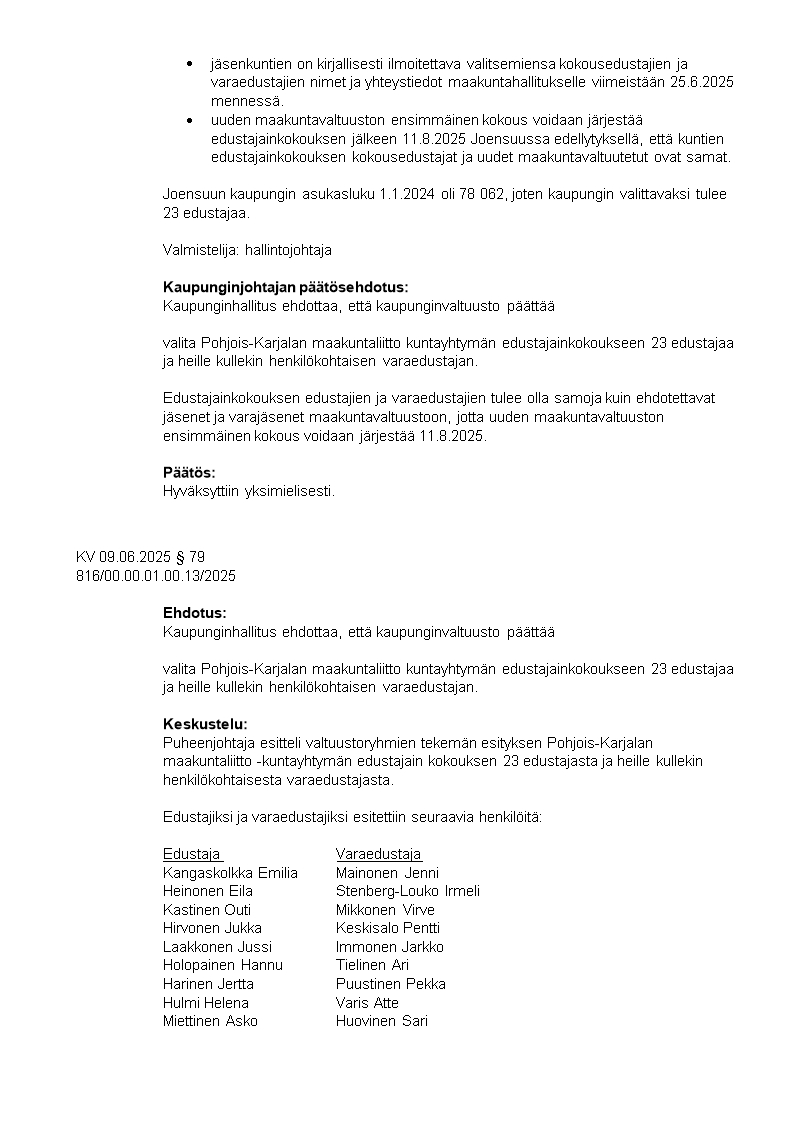 Pöytäkirja 09.06.2025/Pykälä 79