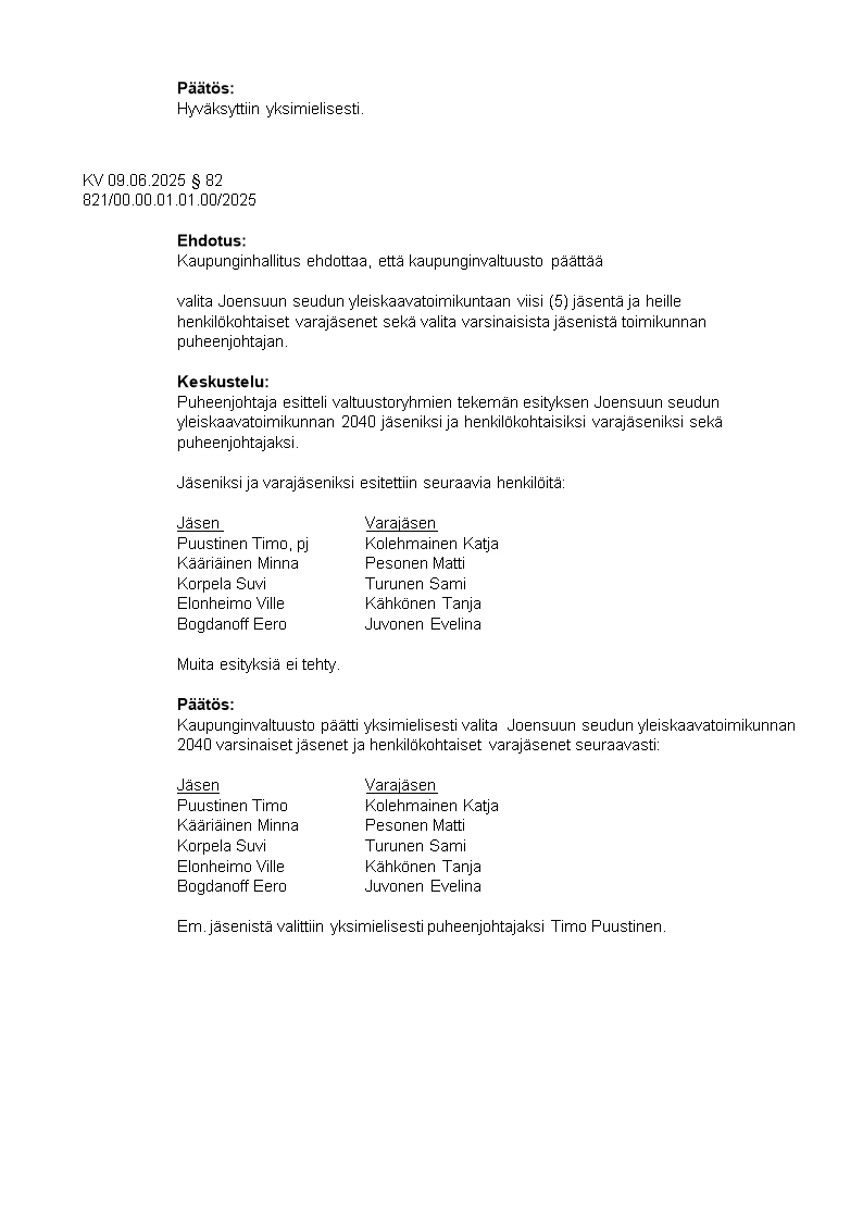Pöytäkirja 09.06.2025/Pykälä 82