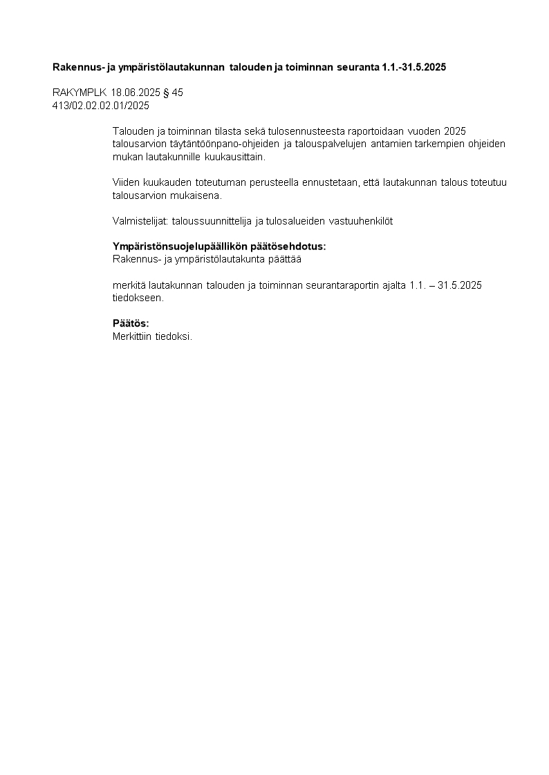 Pöytäkirja 18.06.2025/Pykälä 45