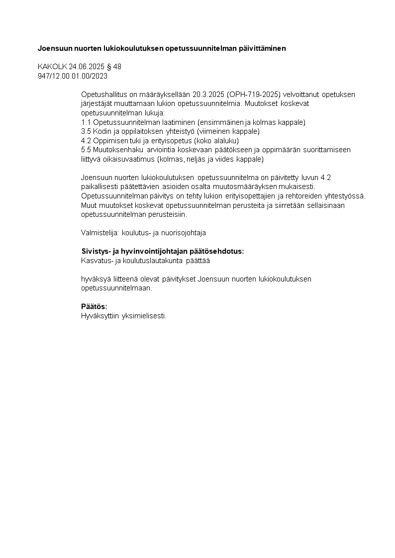 Pöytäkirja 24.06.2025/Pykälä 48