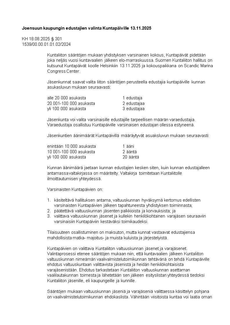 Pöytäkirja 18.08.2025/Pykälä 301