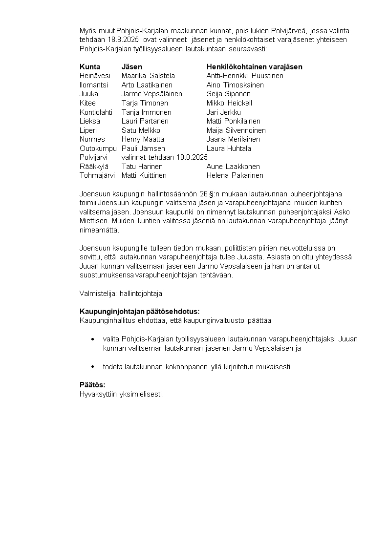 Pöytäkirja 18.08.2025/Pykälä 303