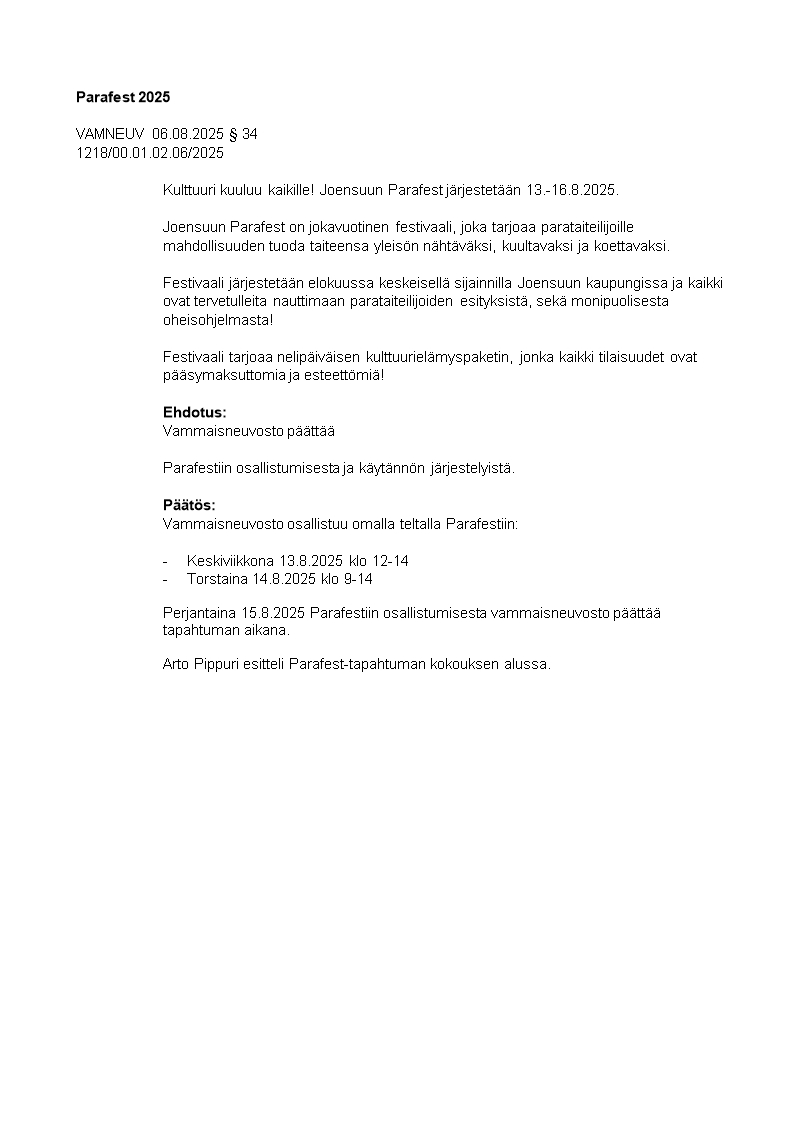 Pöytäkirja 06.08.2025/Pykälä 34