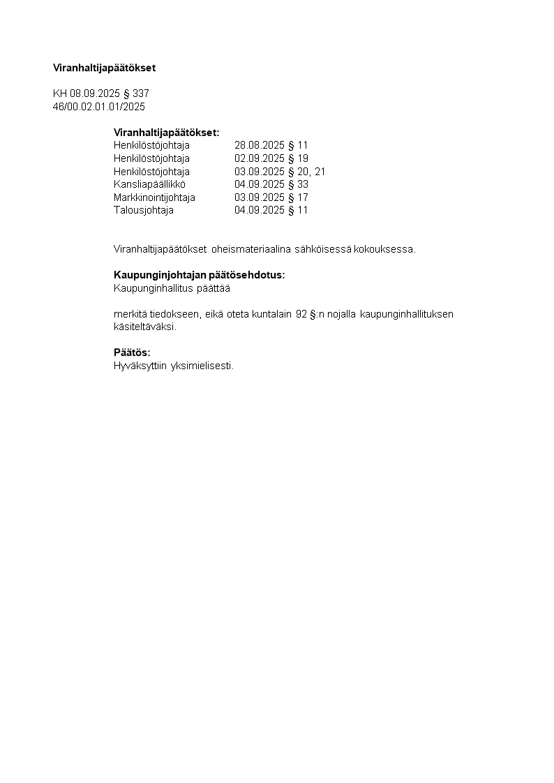 Pöytäkirja 08.09.2025/Pykälä 337