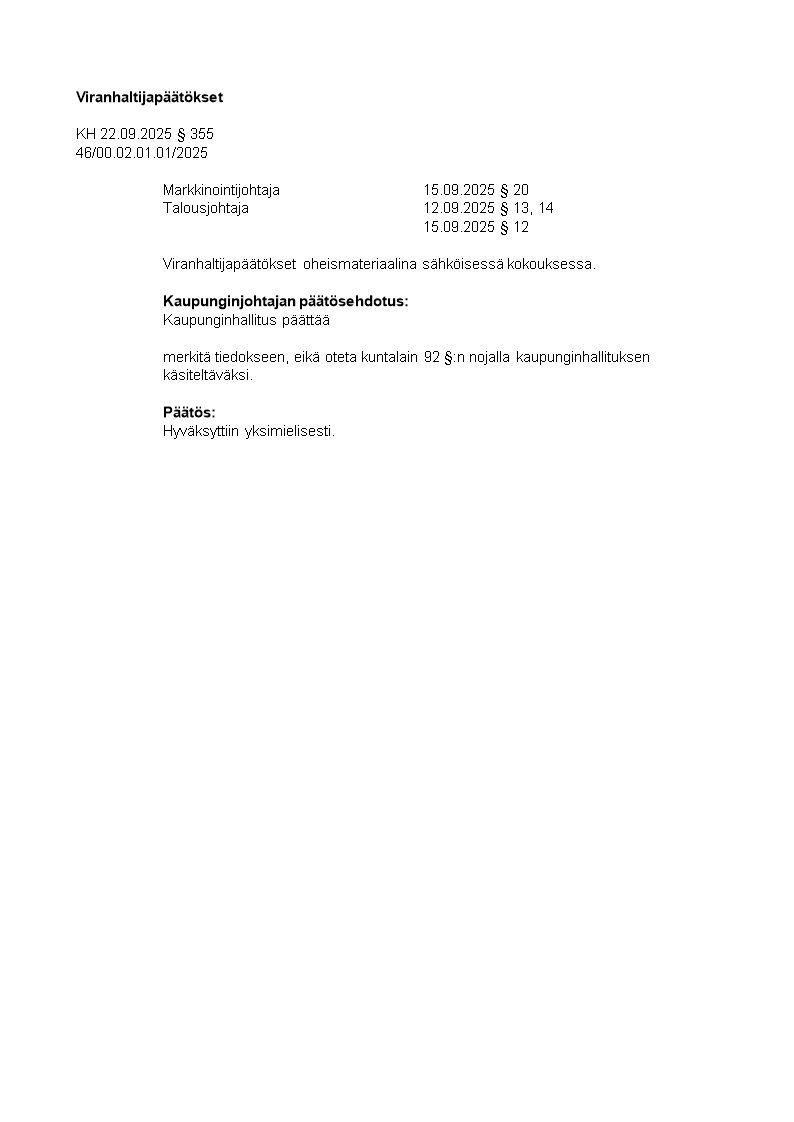 Pöytäkirja 22.09.2025/Pykälä 355
