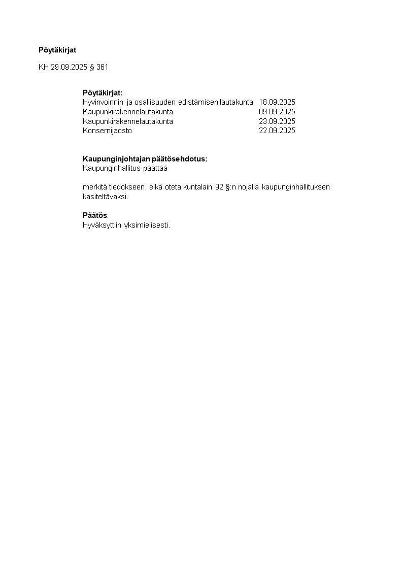 Pöytäkirja 29.09.2025/Pykälä 361