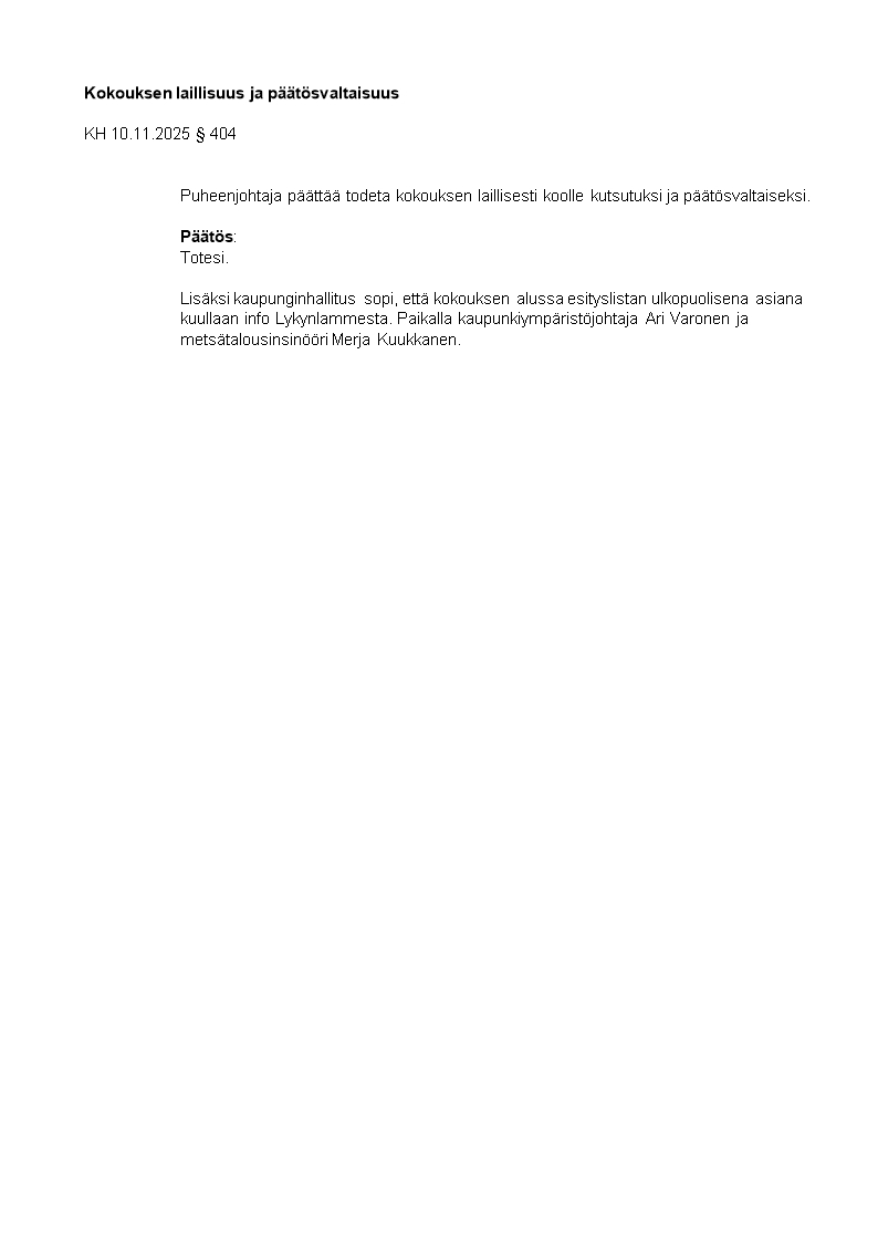 Pöytäkirja 10.11.2025/Pykälä 404