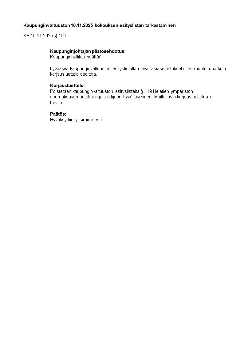 Pöytäkirja 10.11.2025/Pykälä 406