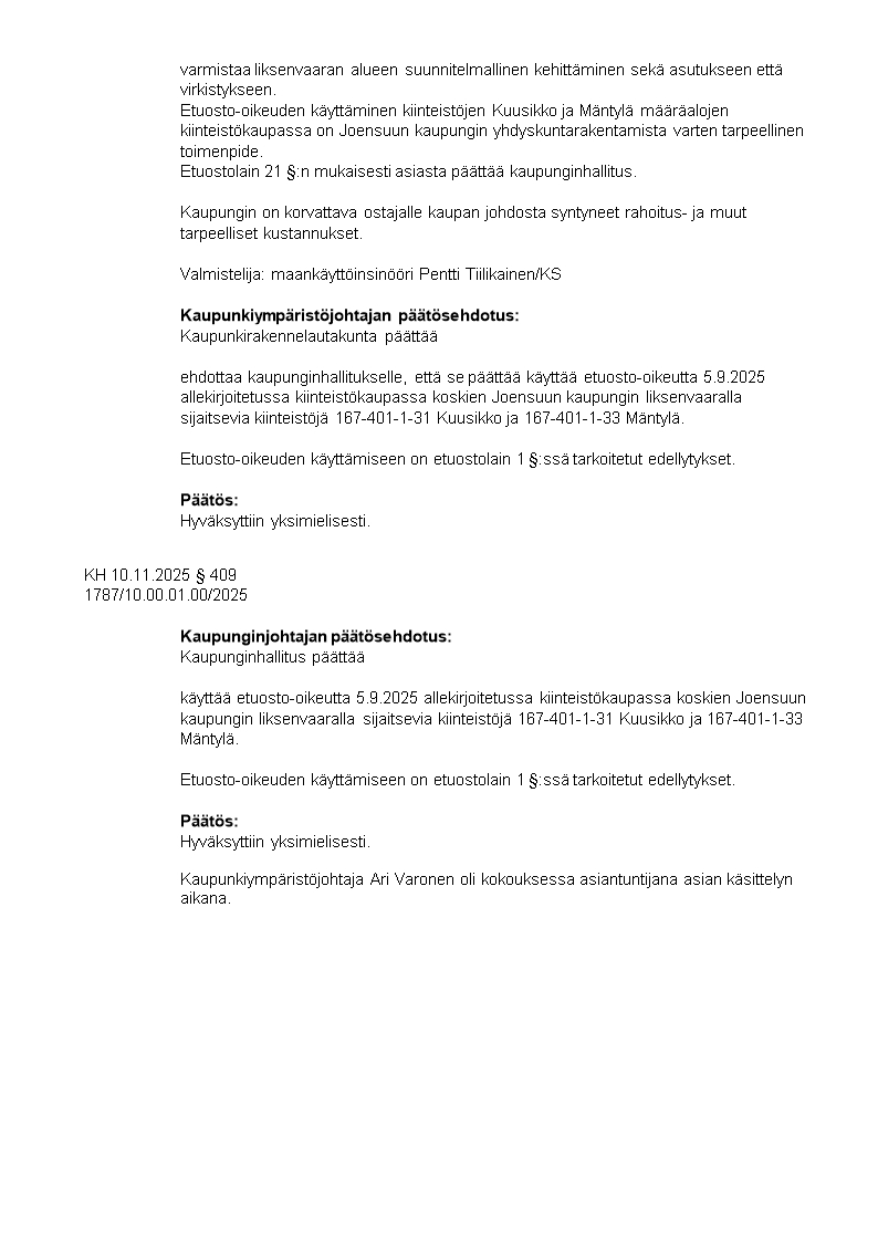 Pöytäkirja 10.11.2025/Pykälä 409
