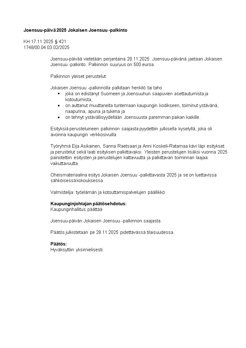 Dynasty tietopalvelu Haku RSS Joensuun kaupunki