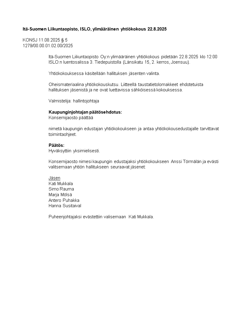 Pöytäkirja 11.08.2025/Pykälä 5