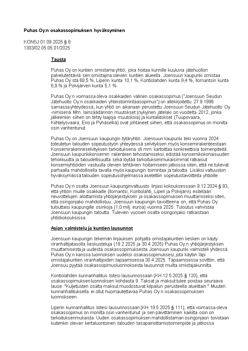 Pöytäkirja 01.09.2025/Pykälä 8