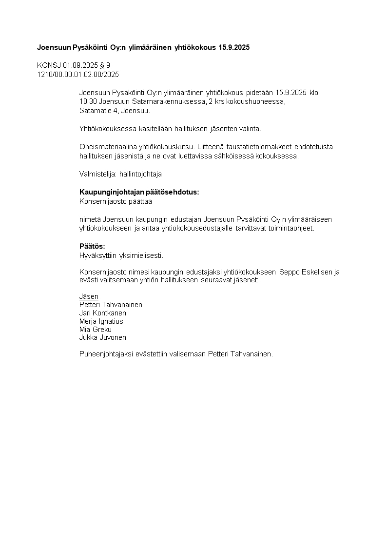 Pöytäkirja 01.09.2025/Pykälä 9