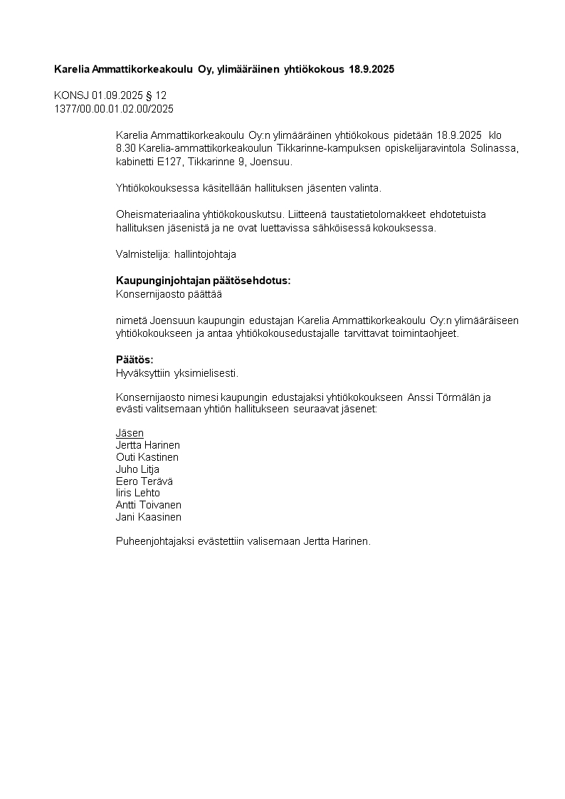 Pöytäkirja 01.09.2025/Pykälä 12