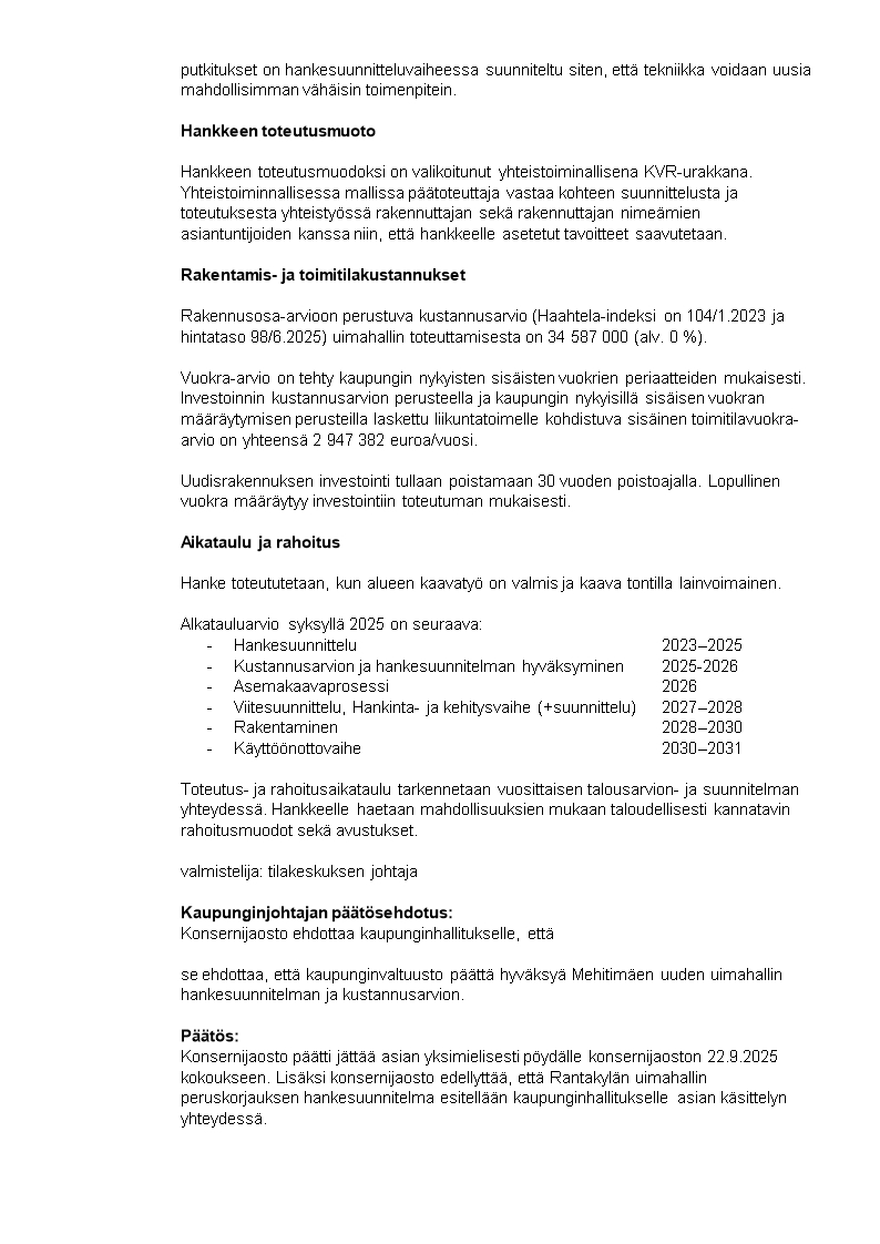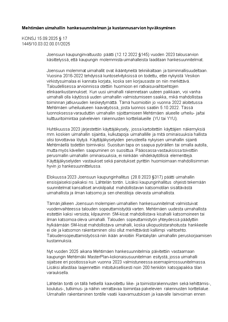 1 Hankesuunnitelma, Mehtimäen uimahalli