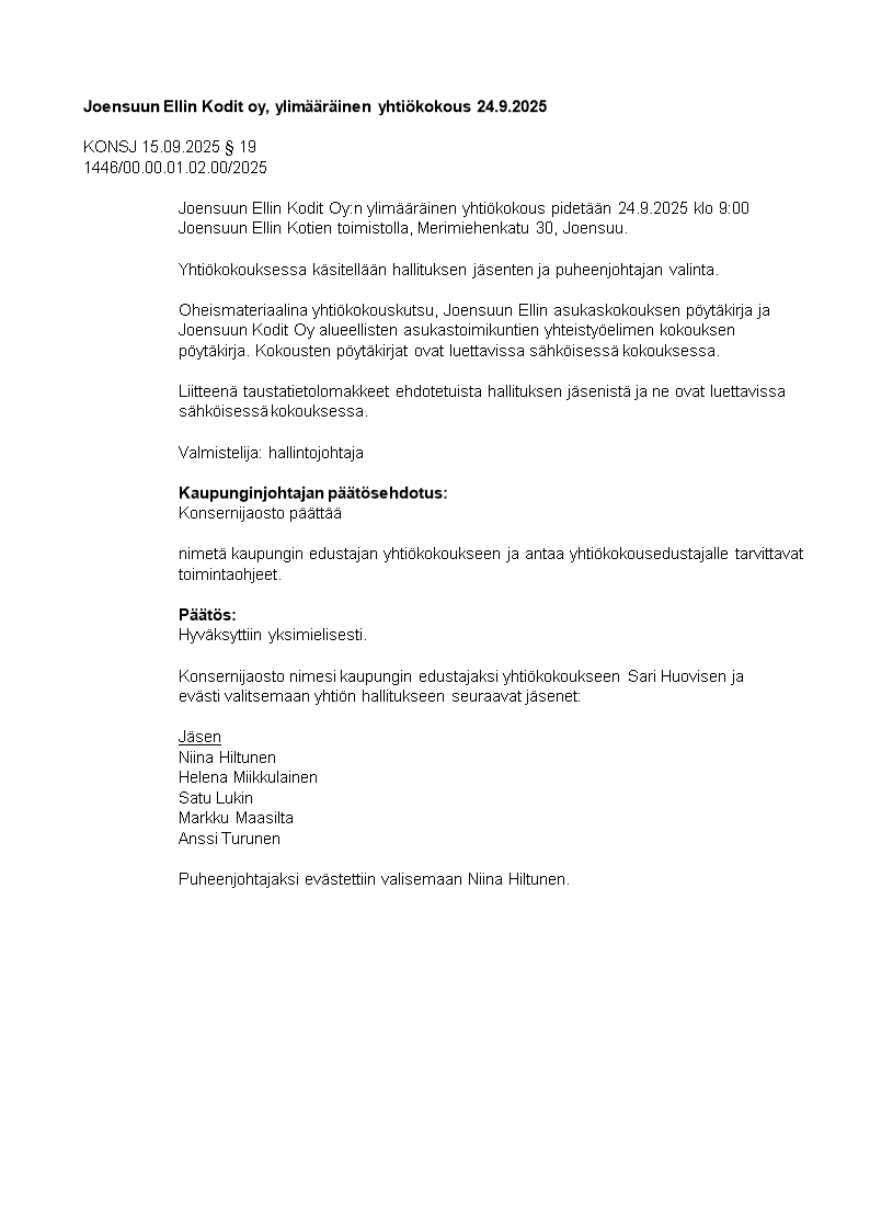 Ellin Kotien yhtiökokouskutsu 24.9.2025