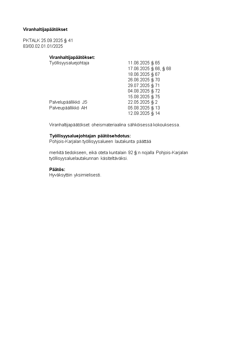 Pöytäkirja 25.09.2025/Pykälä 41