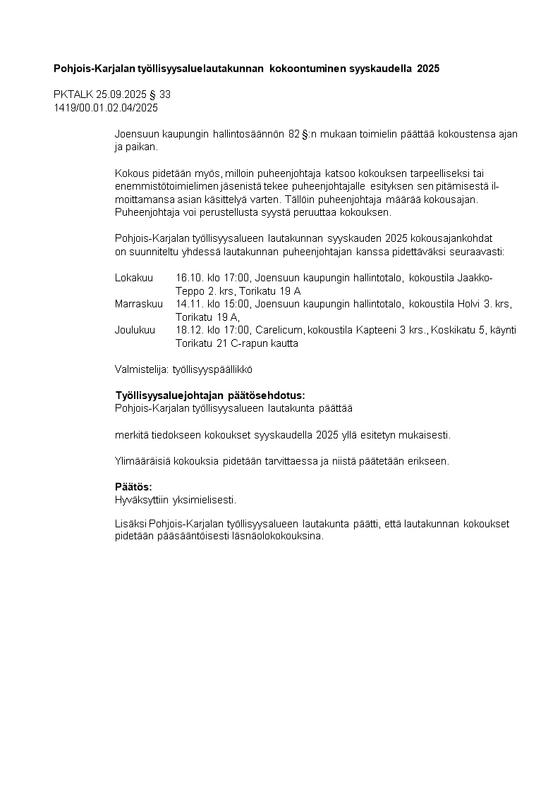 Pohjois-Karjalan työllisyysalueen lautakunta