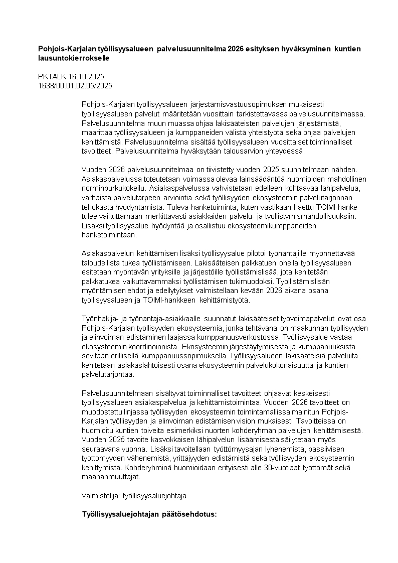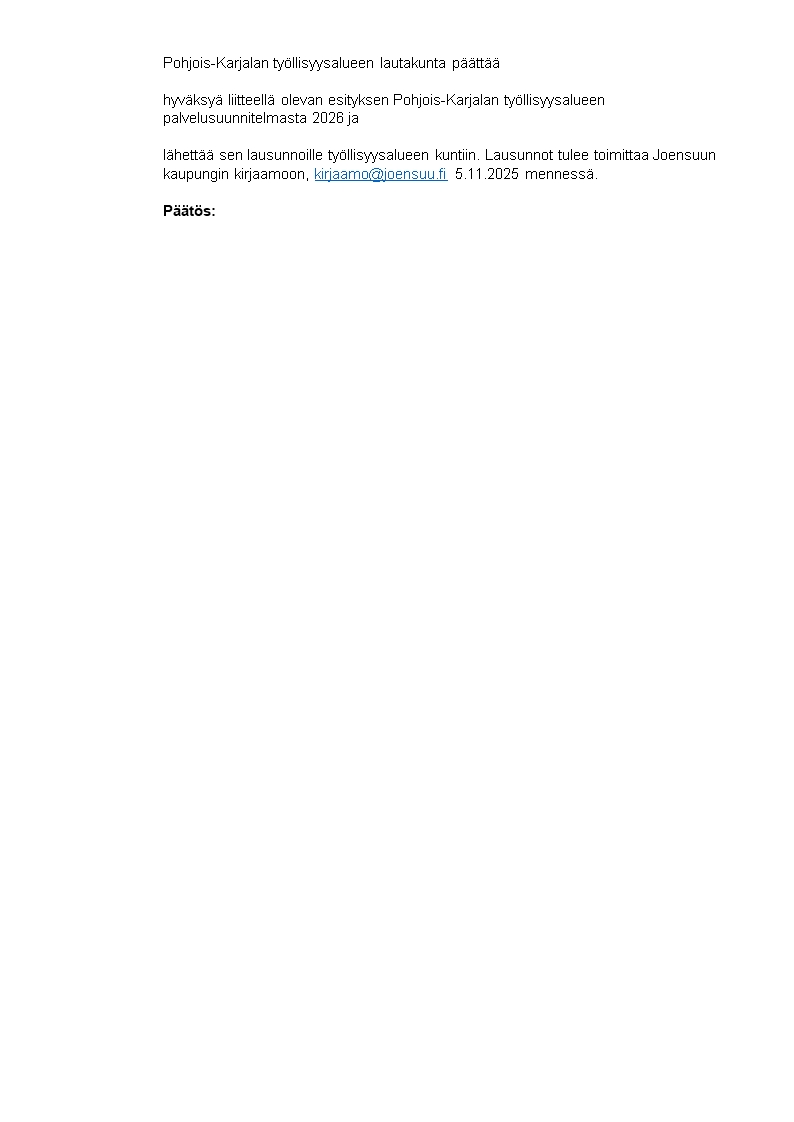 Liite 1 Työllisyysalueen palvelusuunnitelma 2026