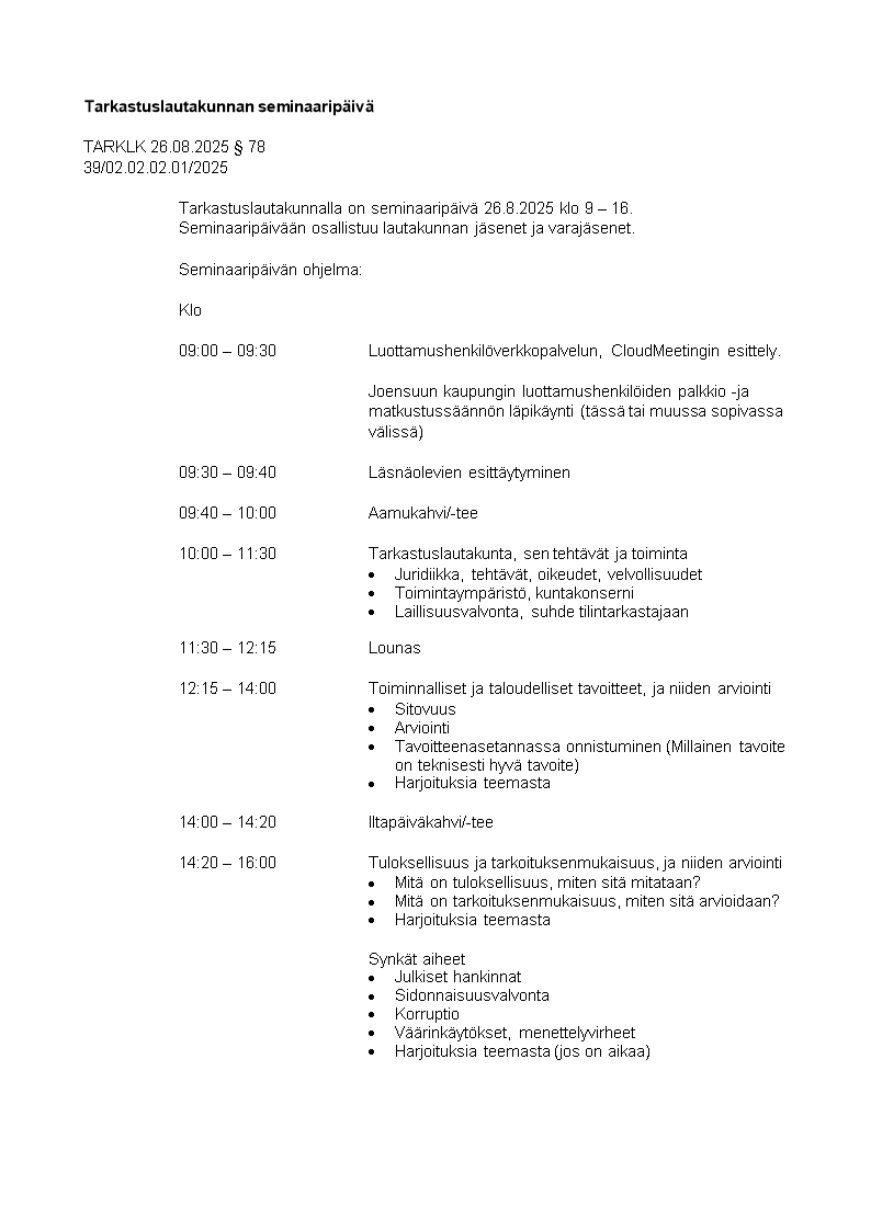 Pöytäkirja 26.08.2025/Pykälä 78
