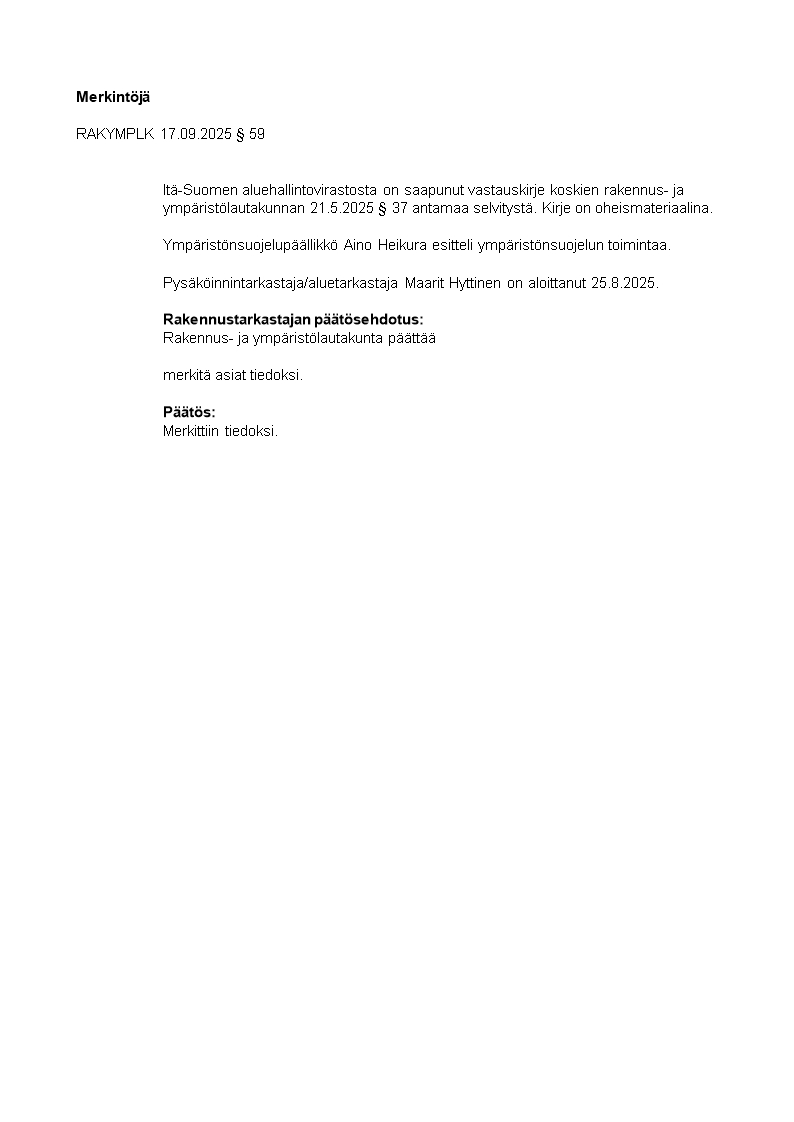 Pöytäkirja 17.09.2025/Pykälä 59