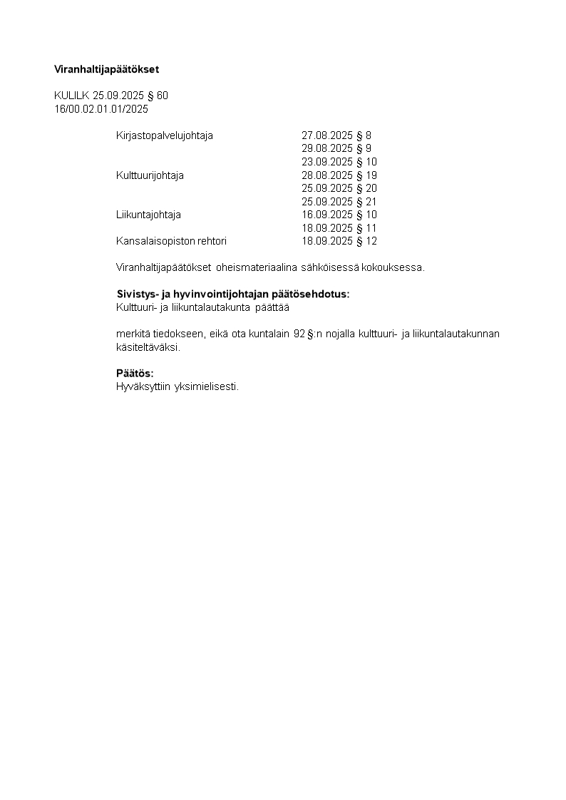 Pöytäkirja 25.09.2025/Pykälä 60
