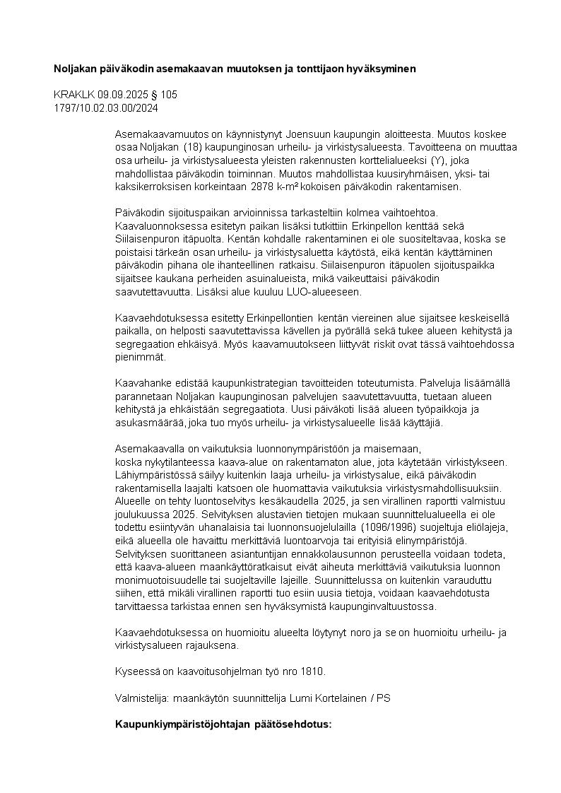 Pöytäkirja 09.09.2025/Pykälä 105