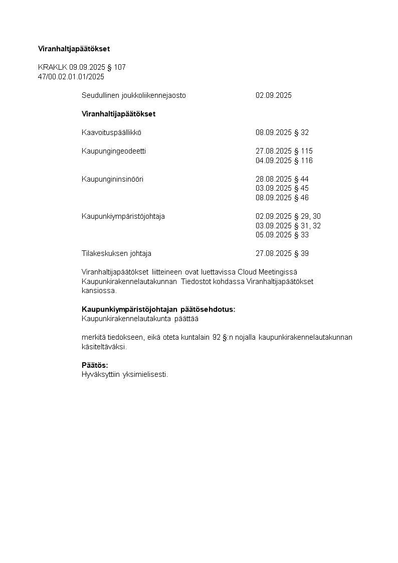 Pöytäkirja 09.09.2025/Pykälä 107