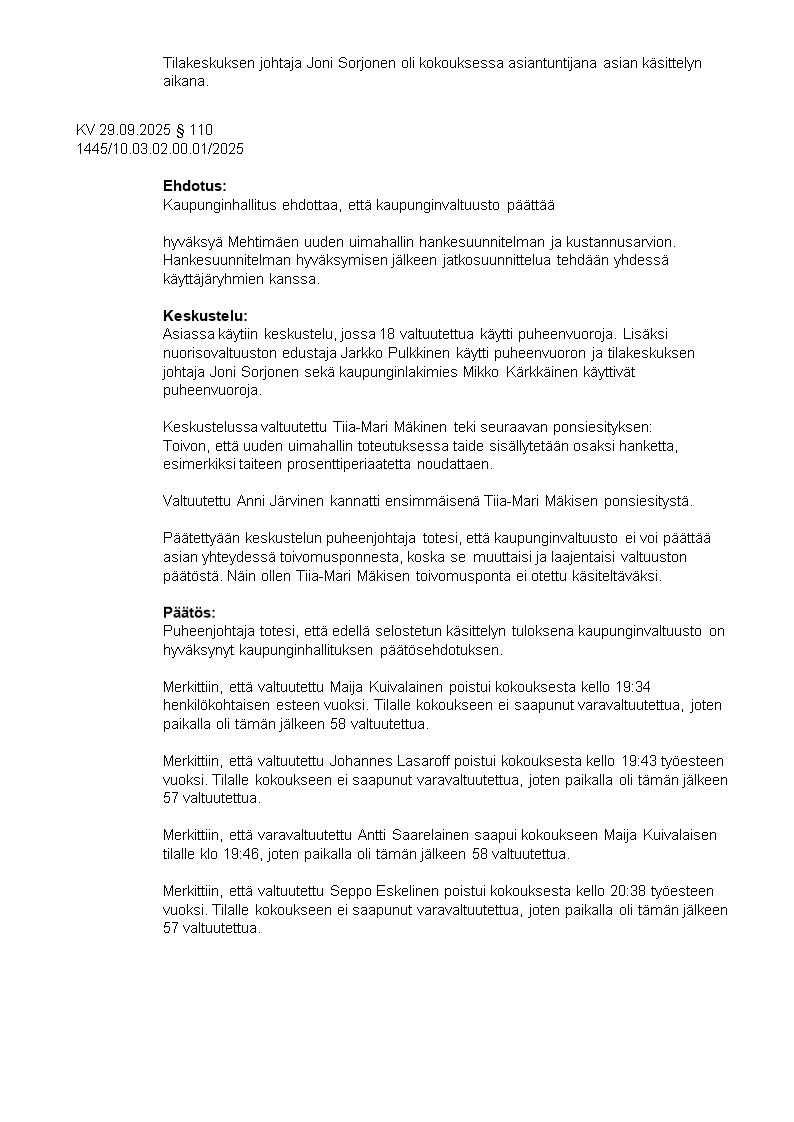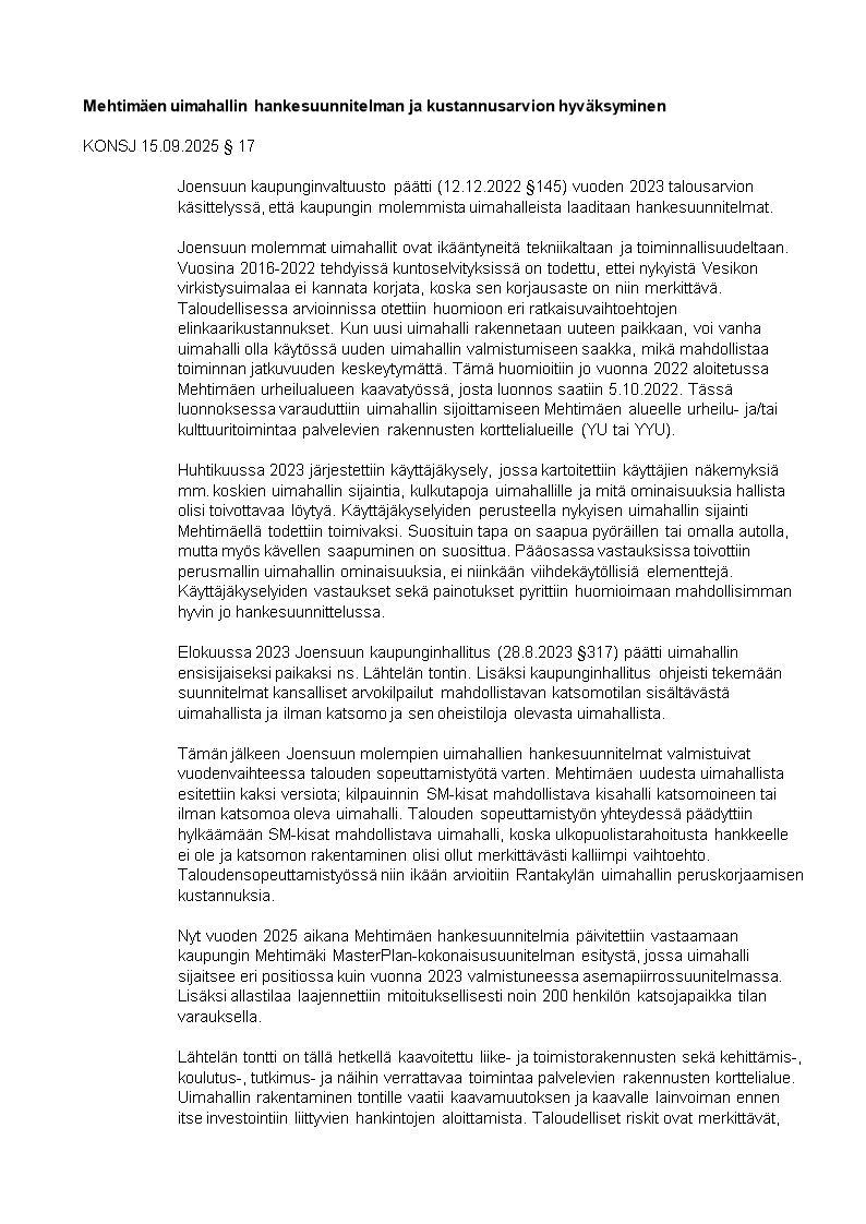 13 Hankesuunnitelma, Mehtimäen uimahalli