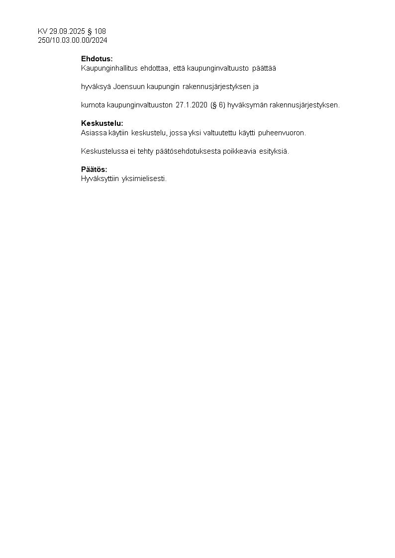 Pöytäkirja 29.09.2025/Pykälä 108