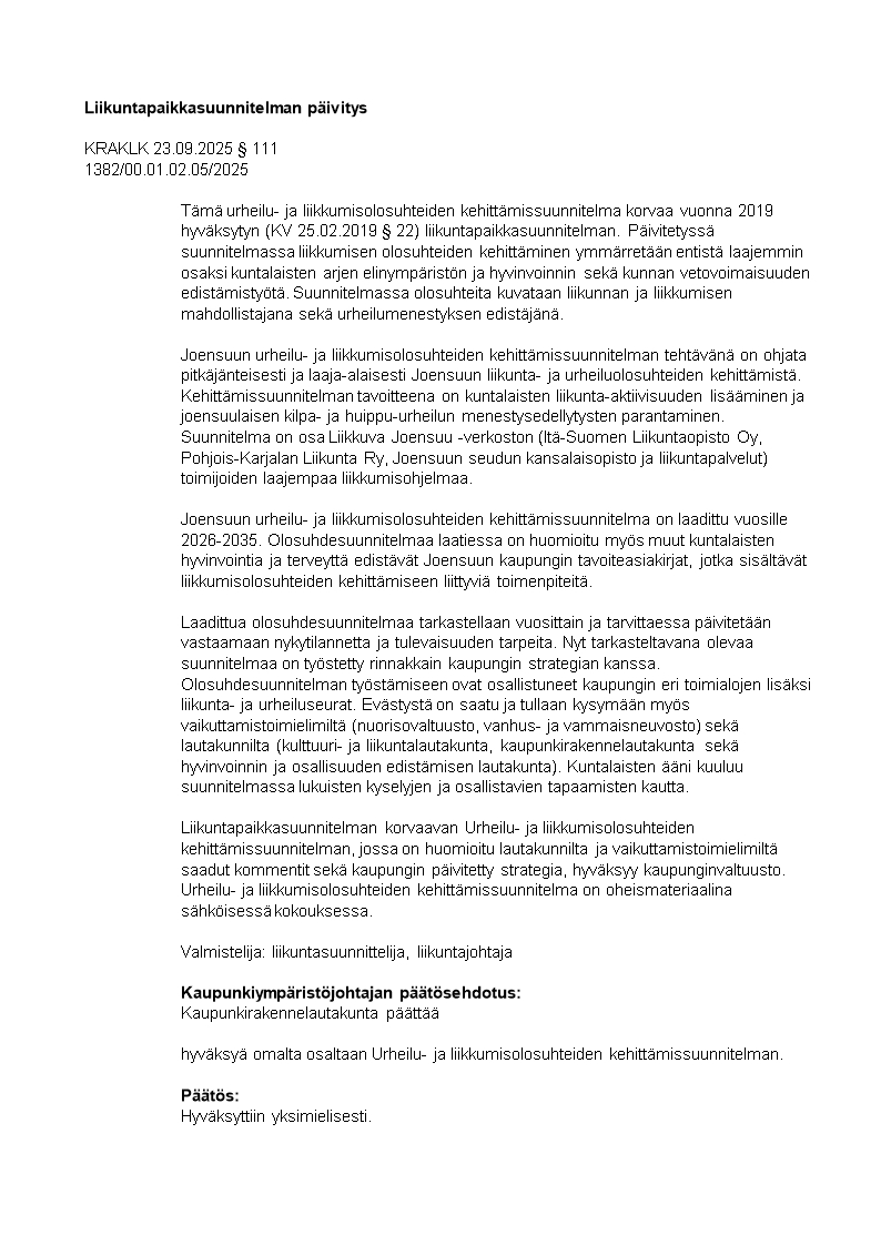 Pöytäkirja 23.09.2025/Pykälä 111