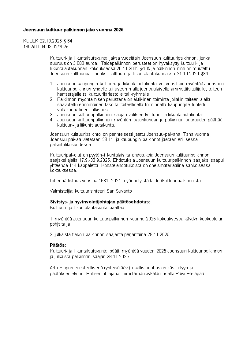 3 Joensuun kulttuuripalkinnot 1981-2024