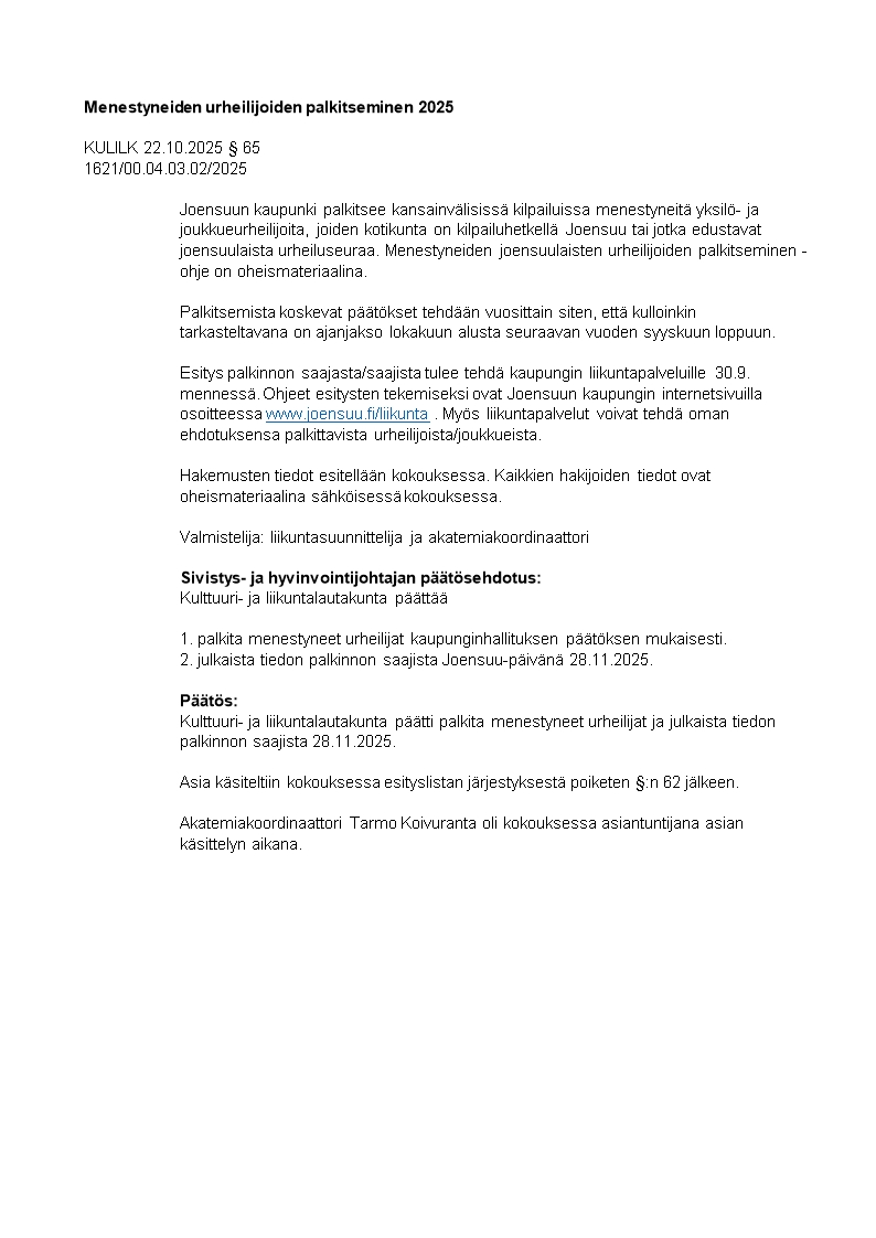 Dynasty tietopalvelu Haku RSS Joensuun kaupunki