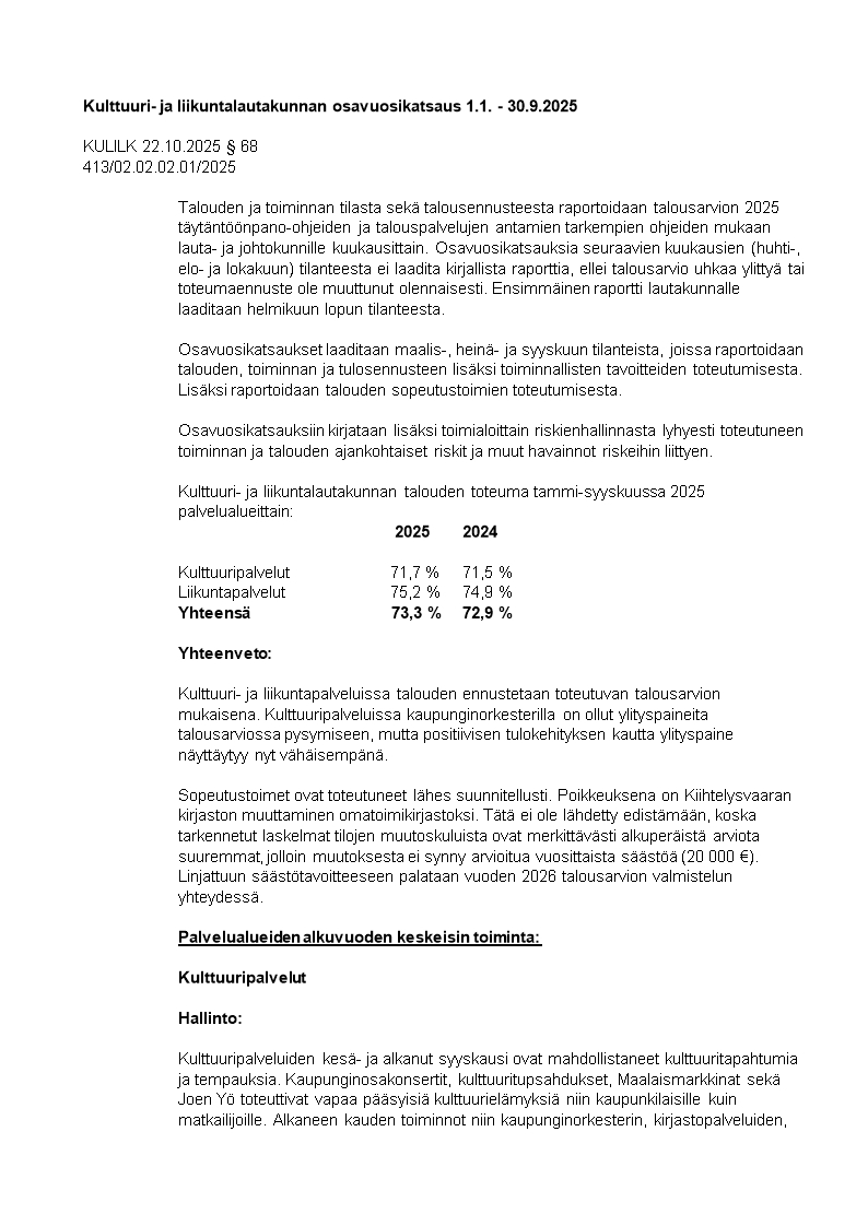 Pöytäkirja 22.10.2025/Pykälä 68