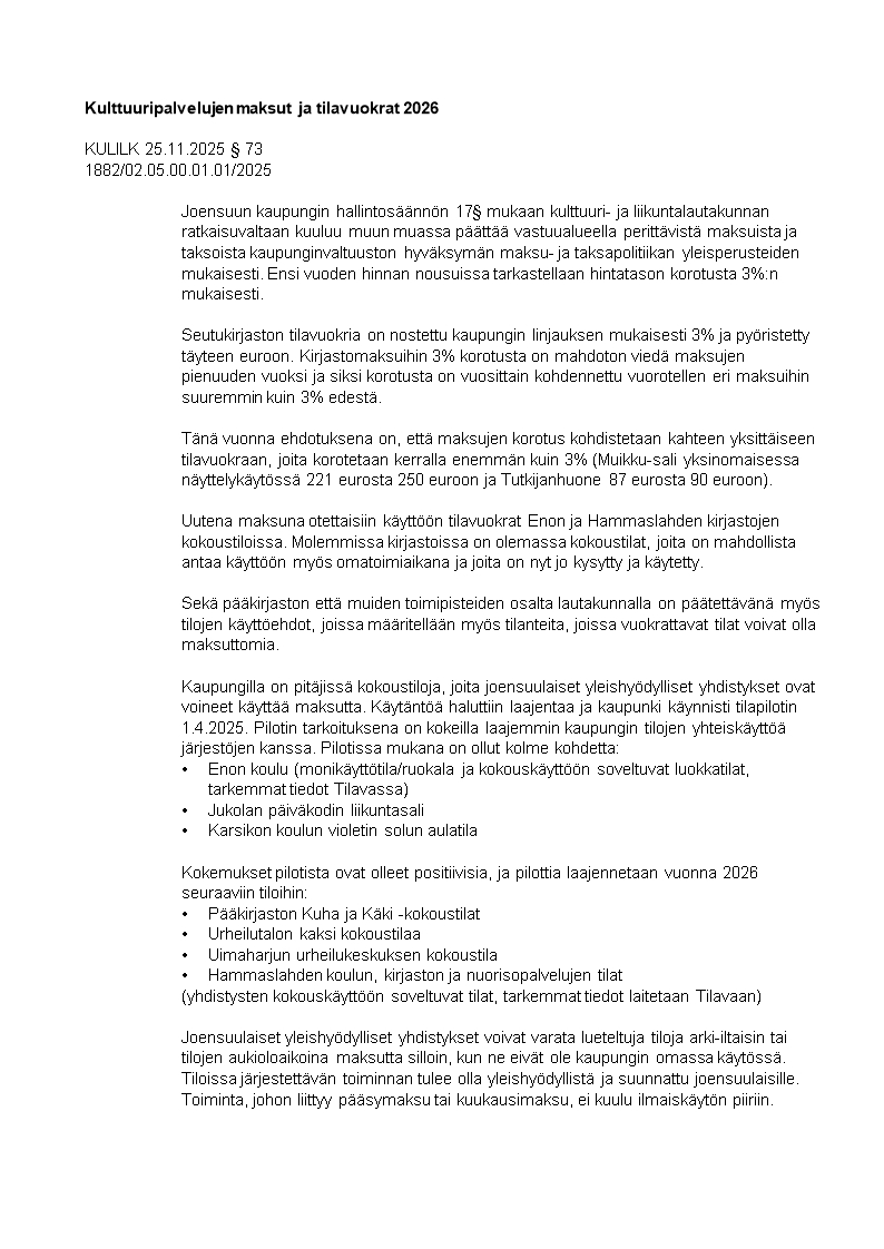 Dynasty tietopalvelu Haku RSS Joensuun kaupunki