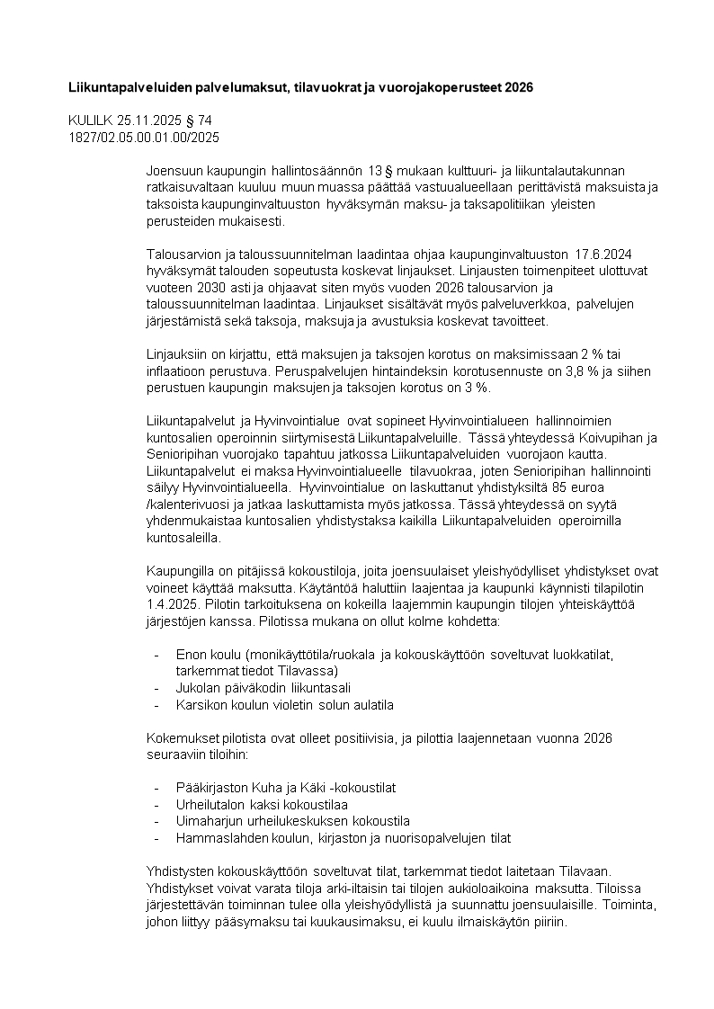 Pöytäkirja 25.11.2025/Pykälä 74