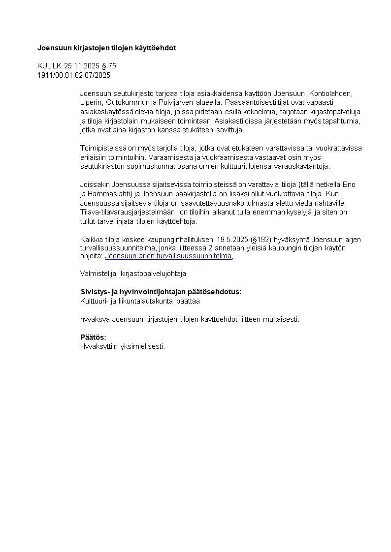 Pöytäkirja 25.11.2025/Pykälä 75