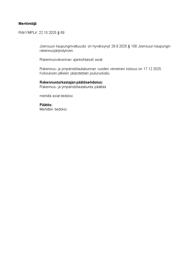Pöytäkirja 22.10.2025/Pykälä 69