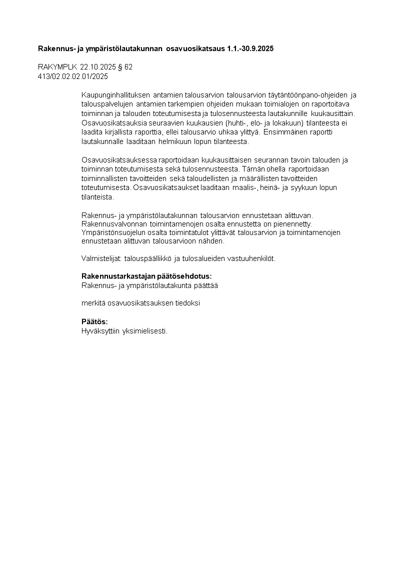 Pöytäkirja 22.10.2025/Pykälä 62
