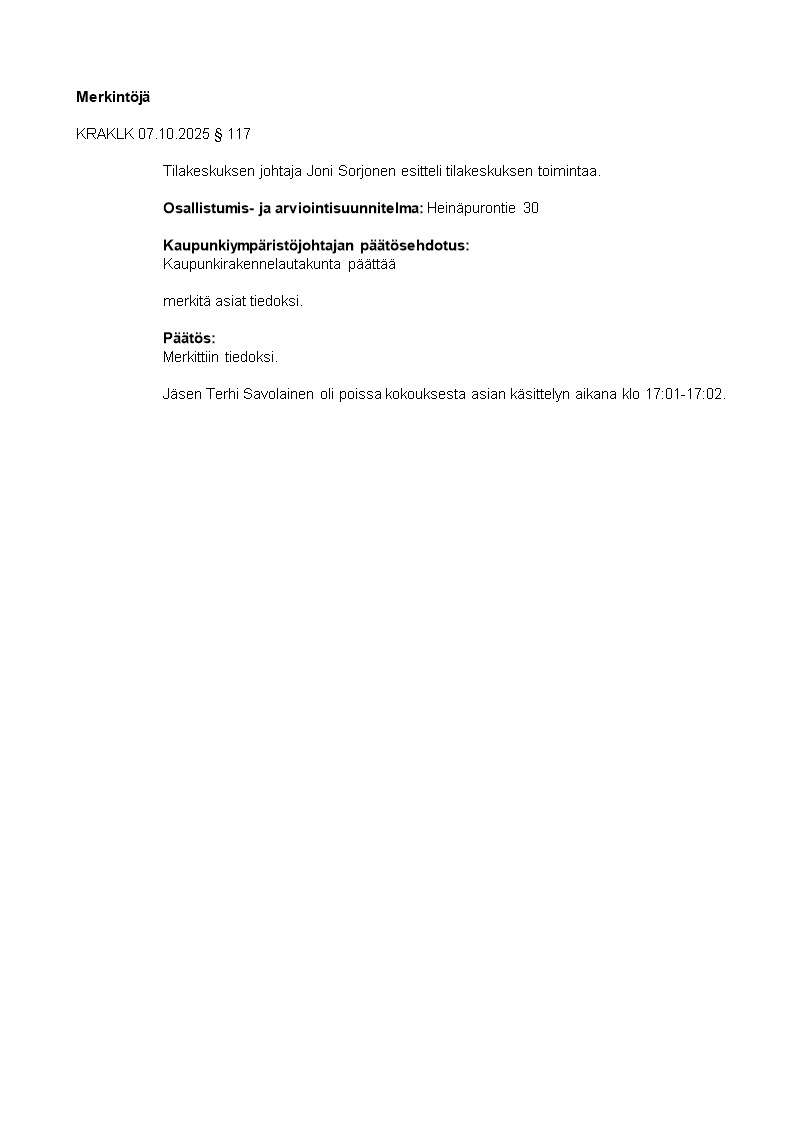Pöytäkirja 07.10.2025/Pykälä 117
